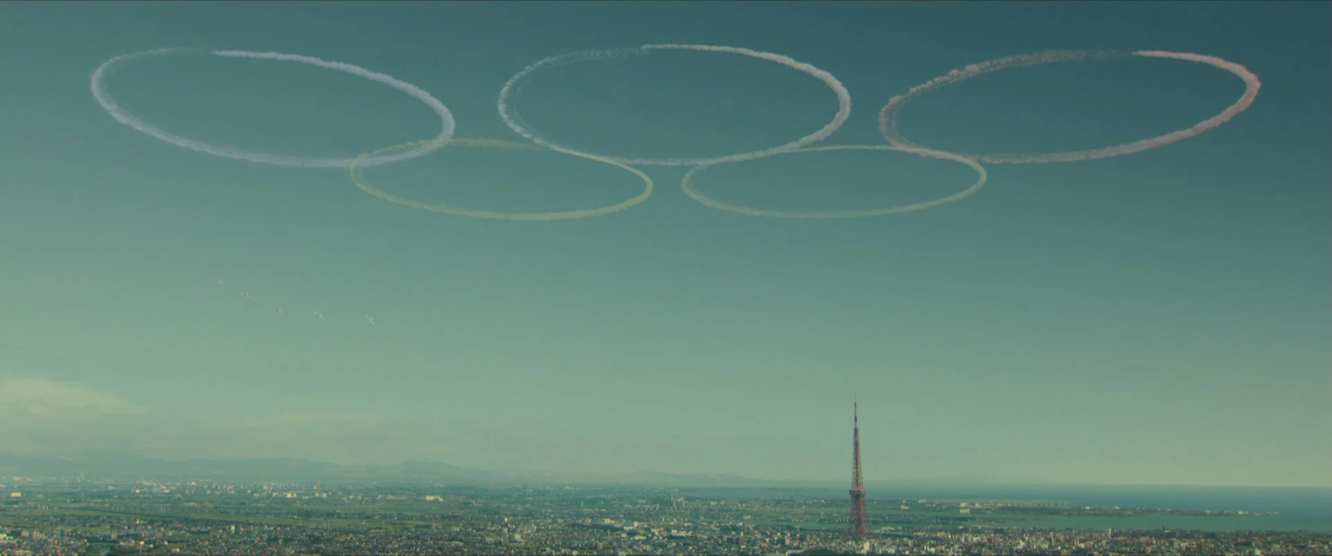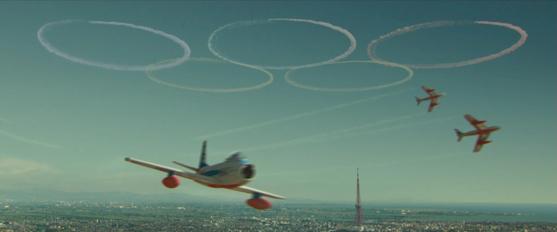 In Blue Impulse livery. Draws the Olympic rings above the sky of Tokyo as part of the opening ceremony of the 1964 Tokyo Olympics.
