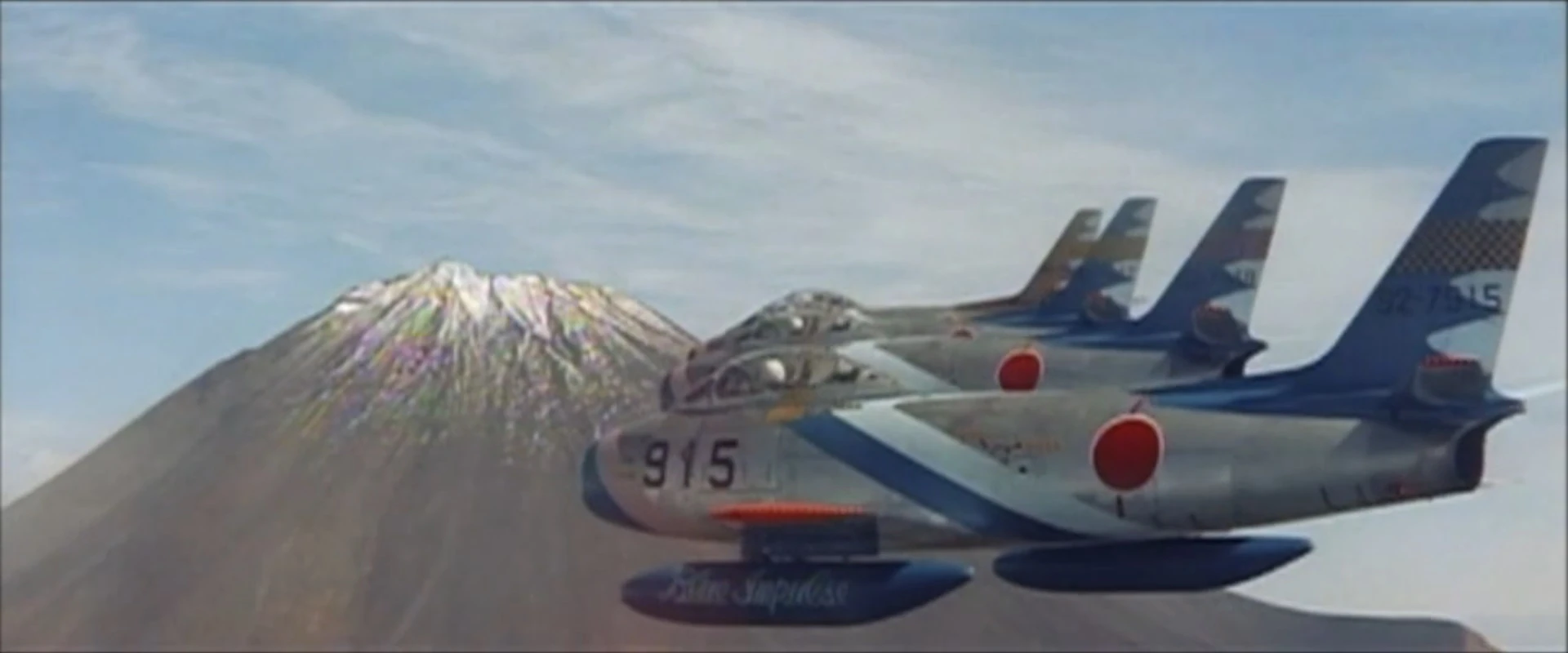 Multiple Sabres of the Japan Air Self Defense Force (JASDF), many of which were from the Blue Impulse, appears in this movie.