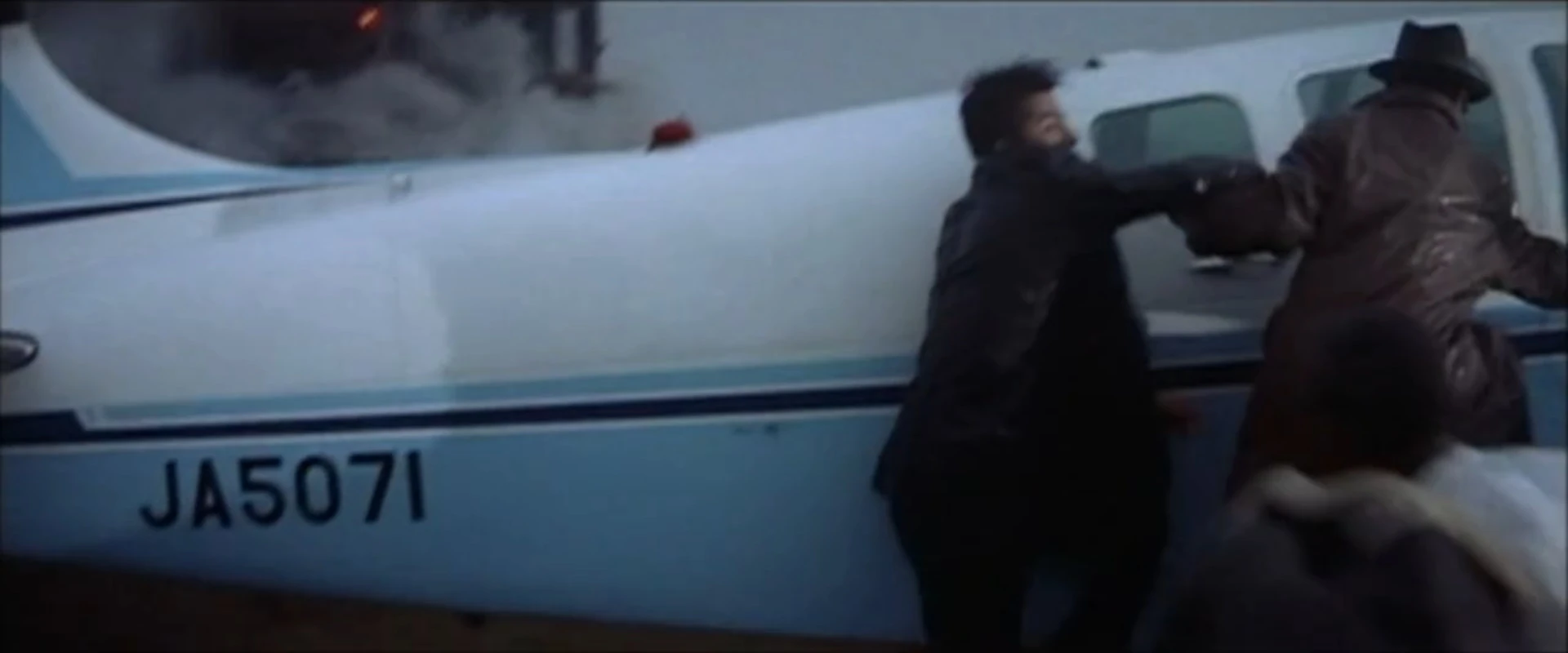 JA3034 (c/n 20768) 'Hatsushima' of Tokyo Air, wearing the fictitious company name of "Taiheiyo Koku", which is the airplane operator the protagonist works for a bulk of the film after a dishonorable discharge from the JASDF.