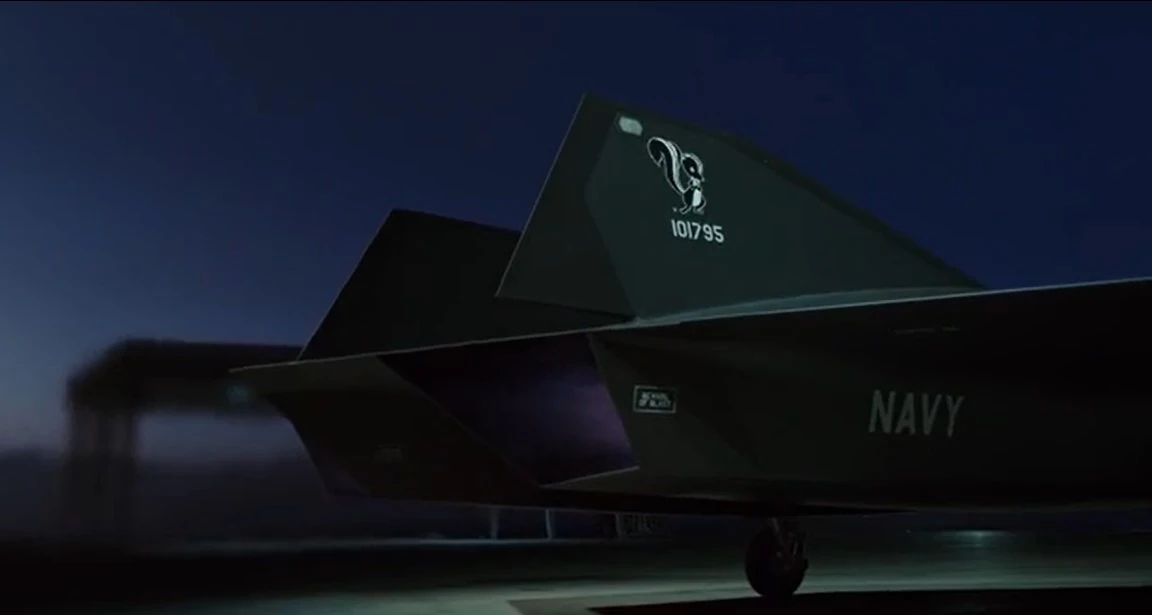 Computer animation done maybe from BuNo 159623 of Naval Air Warfare Center, Point Mugu Airpark, NAWC Point Mugu, California. Weapons changed (Sparrow erased) and fictitious "Captain Pete Mitchell / Maverick" and 3 kills (symbolizing the MiG-28 scored in Top Gun) added alongside the MODEX 114.